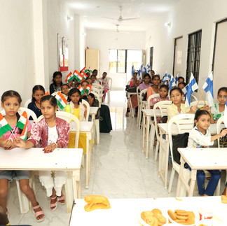 ”Koulun alussa lapset ahmivat nälkäisiin vatsoihinsa ruokaa valtavat määrät, mutta nyt tilanne oli tasaantunut. Heille tarjottiin myös lisää ruokaa. Kaikki lapset on jo madotettu. Kun ruoka oli syöty, lapset nousivat kaikki yhtä aikaa ja kiittivät kauniisti ruoasta. Sen jälkeen he taas pesivät kätensä. Koulun varsinaiset avajaiset pidettiin 10.9.2010 ja silloin nostimme koululla Intian ja Suomen liput salkoon liehumaan. Voi sitä lasten riemua, kun he saivat pienoisliput ja huiskuttivat niitä.”